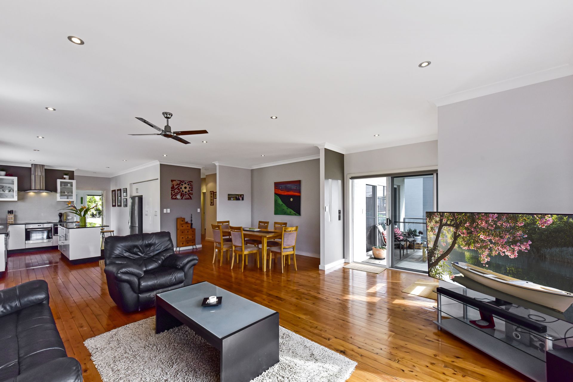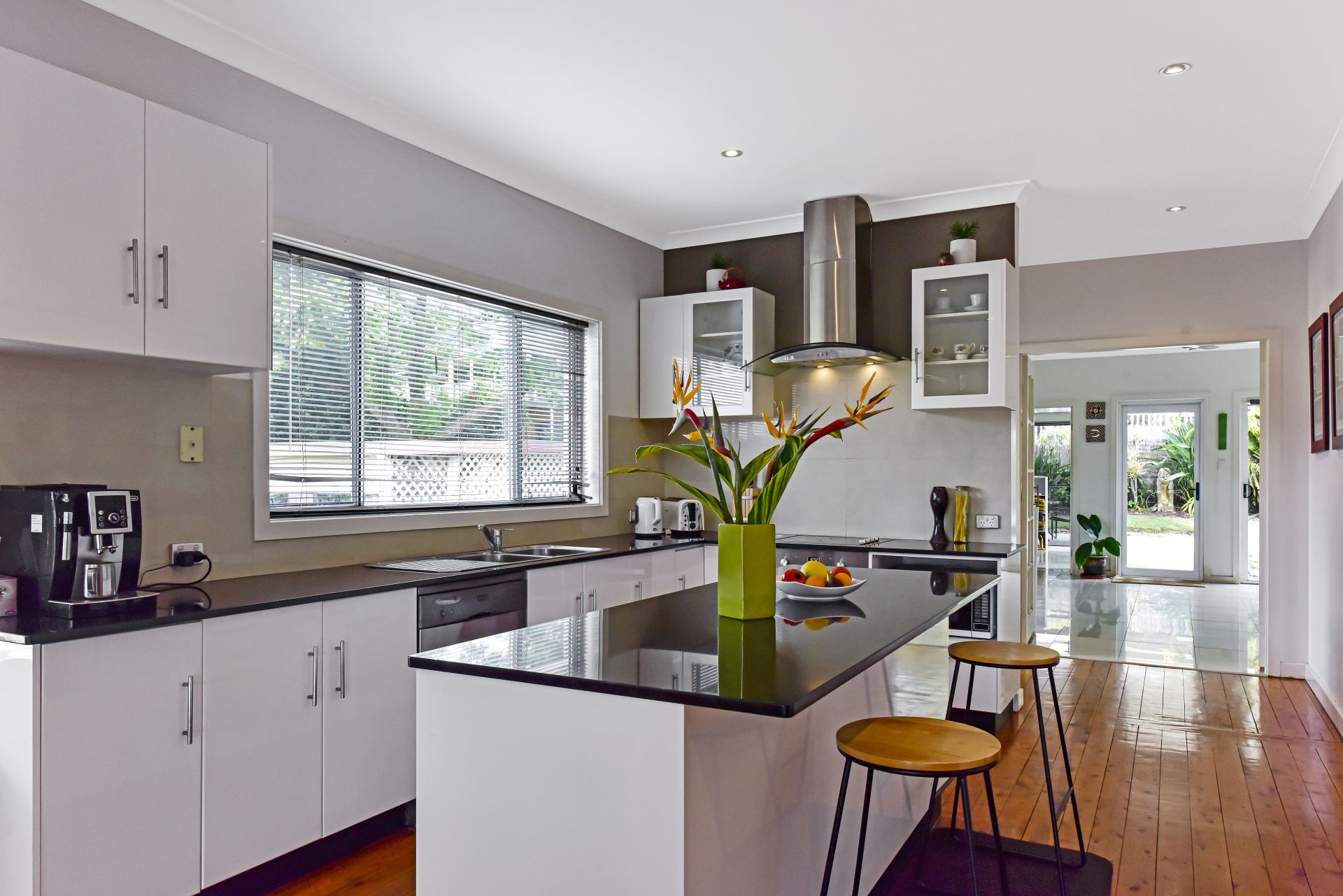 Flowing from the wide central entry, the open plan living concept is light filled and enjoys amazing all-day winter sun and captures the summer breeze for natural cooling throughout.