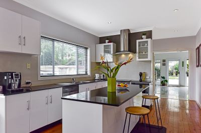 Commanding a north facing slightly elevated position with wide excellent water views on a sun-drenched slope of gorgeous Green Point, this family-sized transitional home offers easy level living right through to the rear private garden.