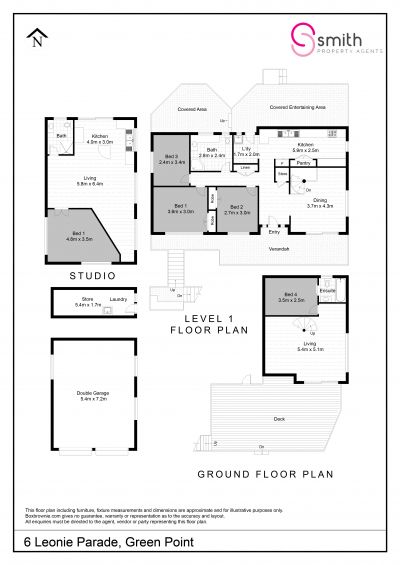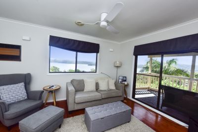 Impressive panoramic wide water views are enjoyed from the private main home with its 4 bedrooms 2 bathrooms, multiple living zones, its covered dual north facing decks and established low maintenance gardens.