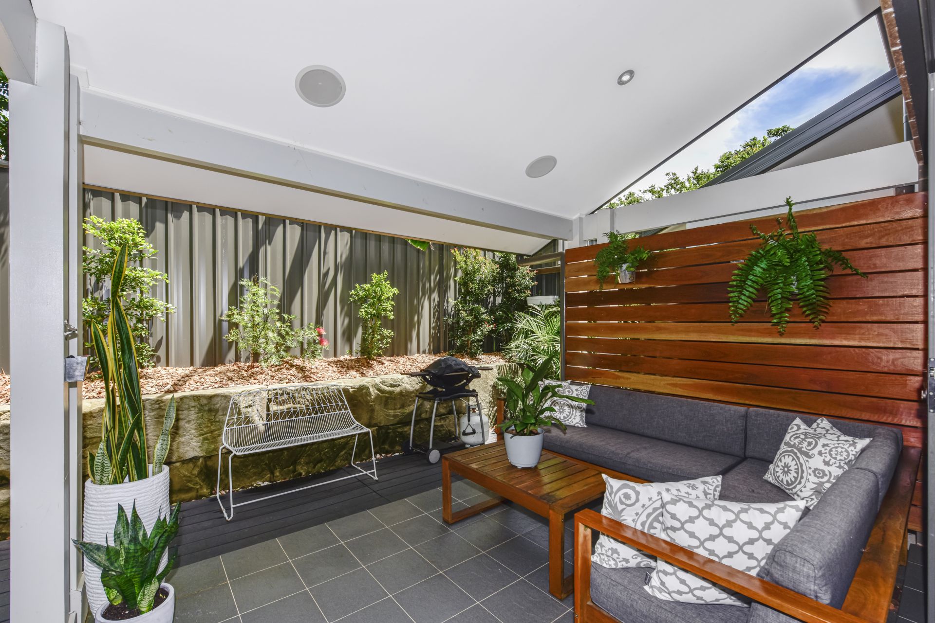 - Internal alarm system and also in ceiling indoor/outdoor speakers